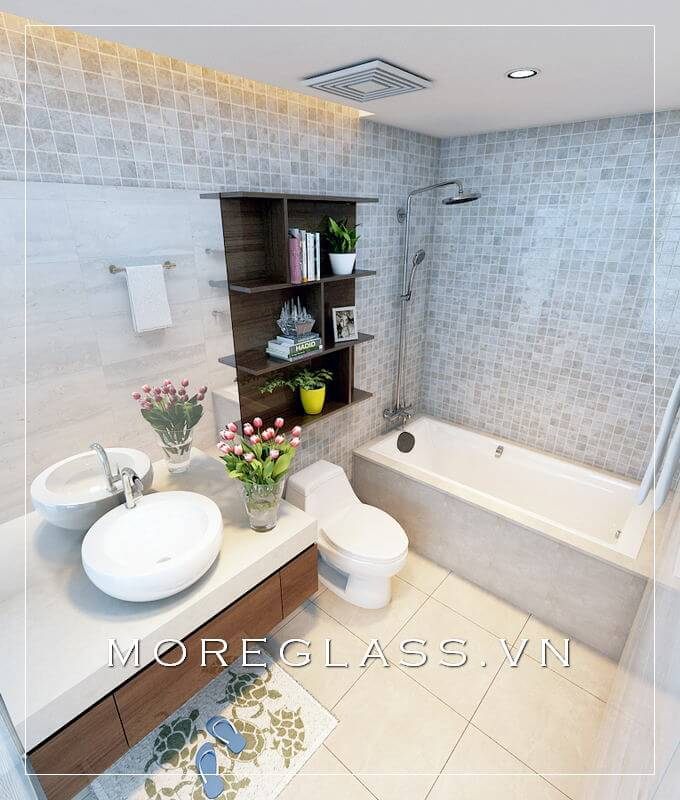 Sử dụng gạch ốp tường và gạch lát sàn tông màu sáng để tạo nên một mẫu thiết kế phòng tắm đẹp sử dụng, để làm tăng cơ nới không gian căn phòng.