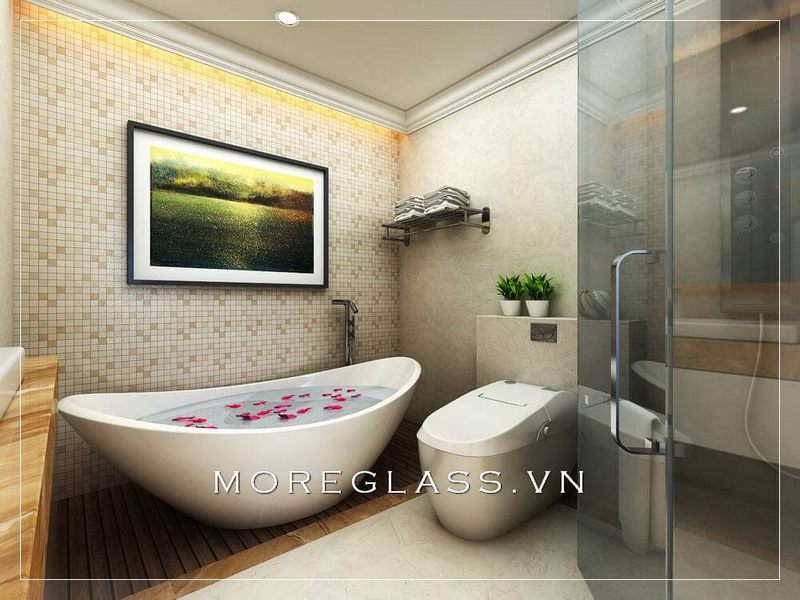 Luôn được các gia chủ ưa chuộng, sử dụng vách kính cường lực để bảo vệ an toàn.