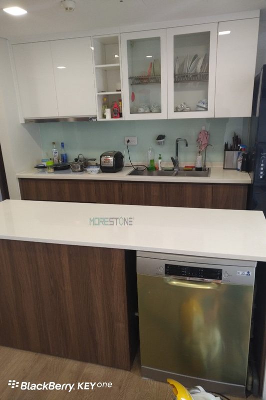 Việc thi công mẫu đảo bếp bằng đá Himacs cao cấp.